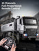 · 13 professional functions: dump bed lift, self-loading shovel, 360° rotation, crab walk, lights, and sounds
