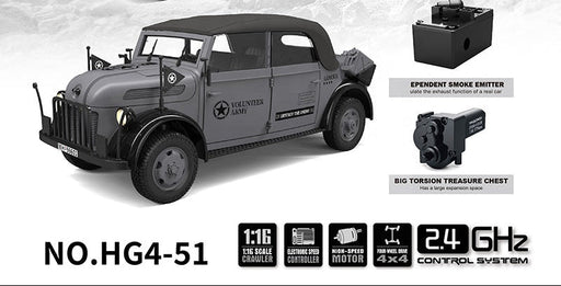 View full detailsSTEYR 1500A HG4-51 PRO RC Military Car – 1:18 Scale German Command Vehicle (Dark Army) Bring history to life with the STEYR 1500A HG4-51 PRO RC Mil...